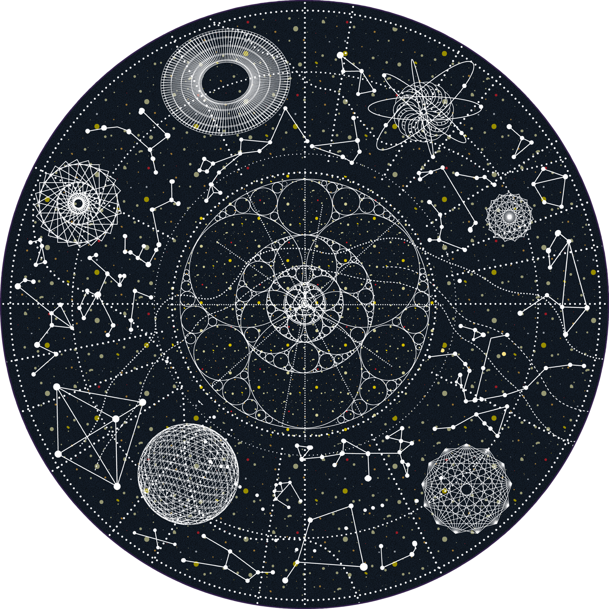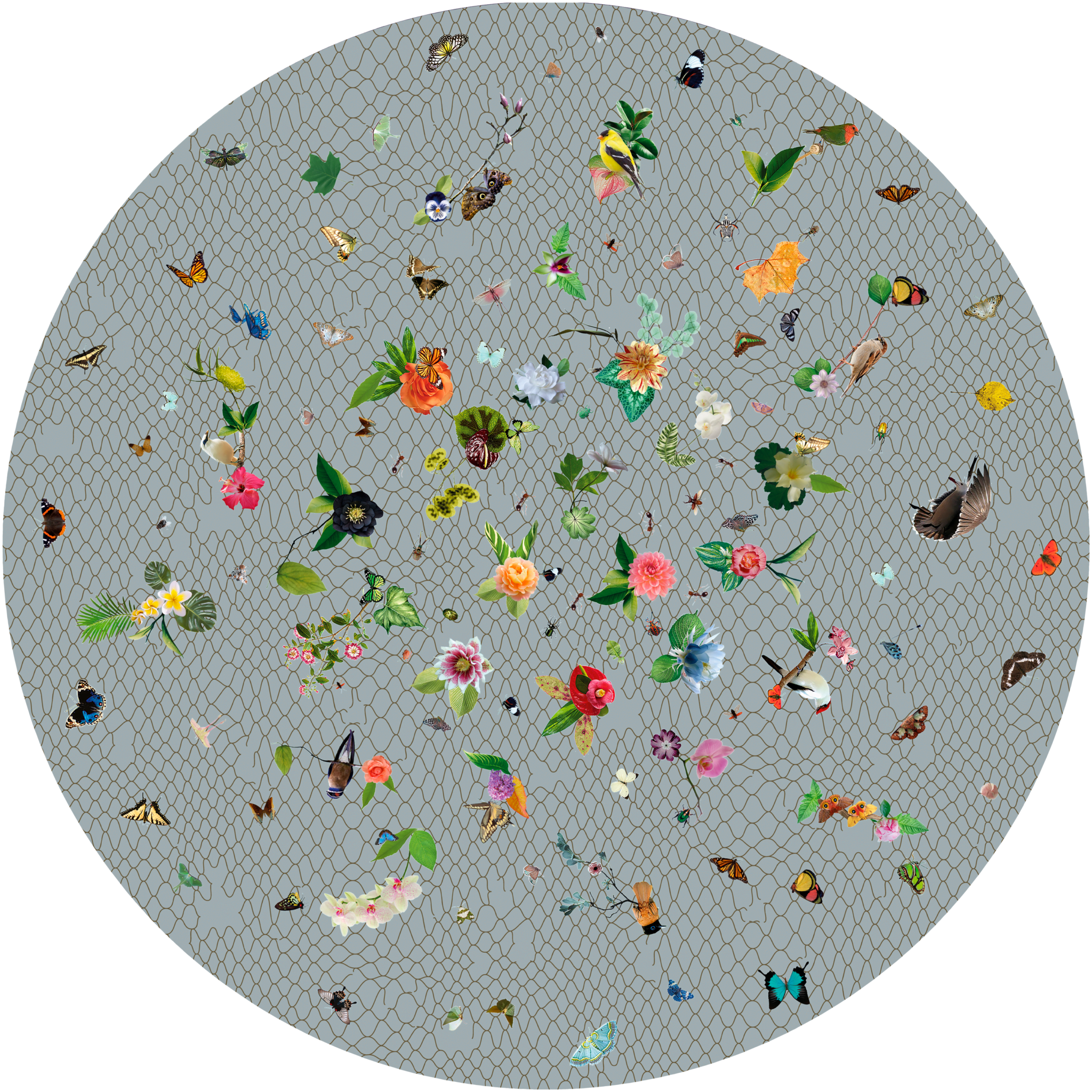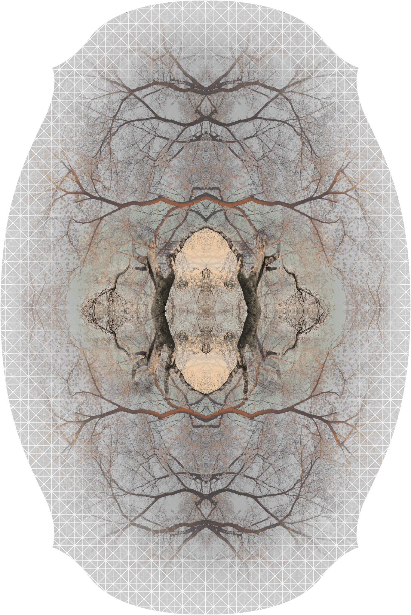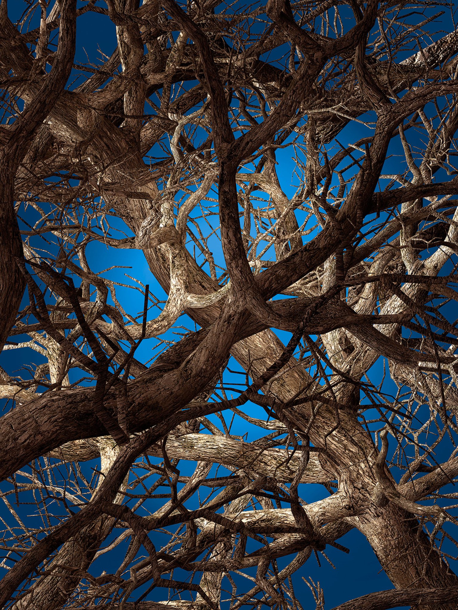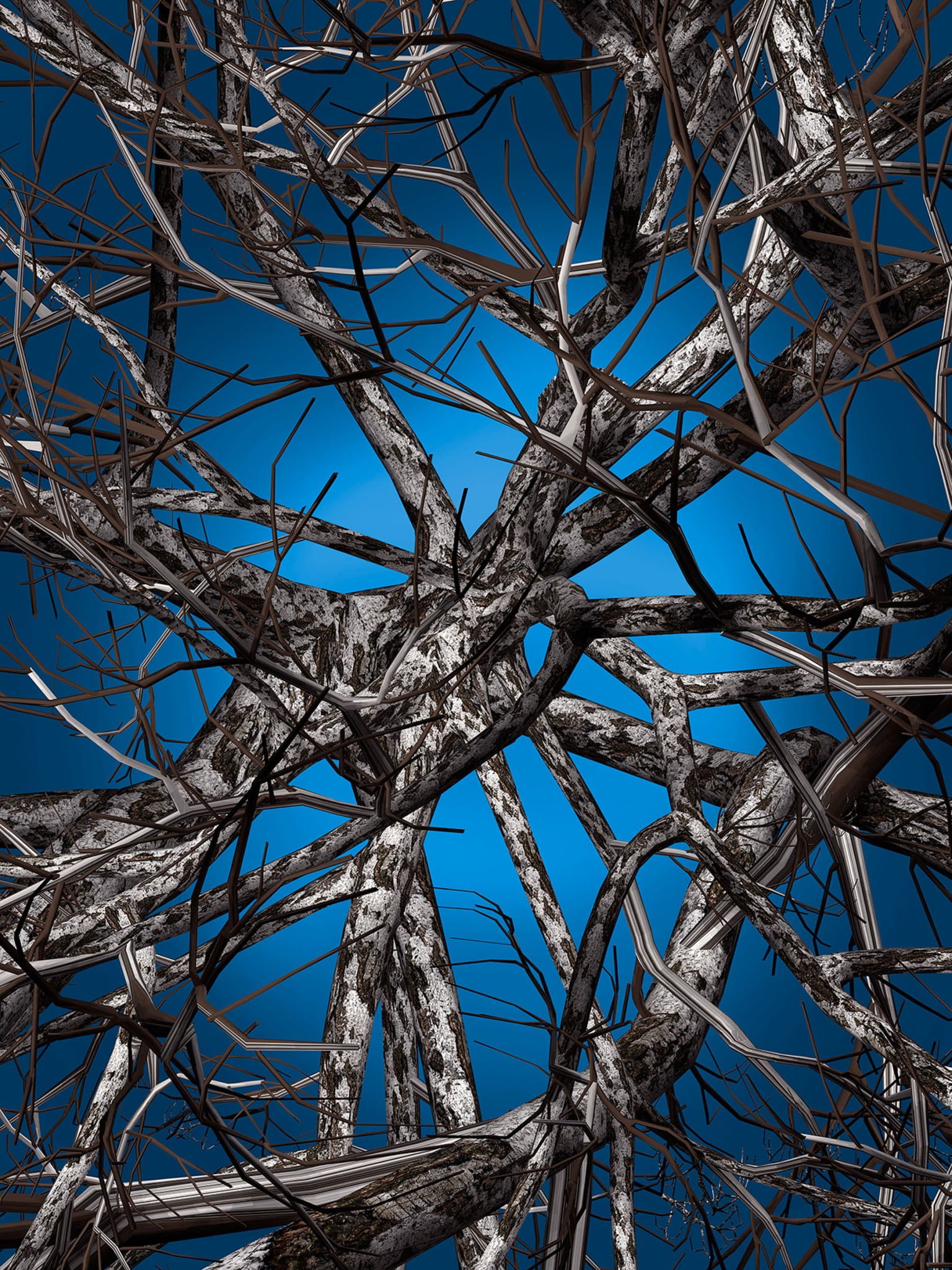 Inspired by the beauty and complexity of life, this design captures a 3D generated network of trees that envelop you in their endless growth. How many trees are there? Which is the point of view?
